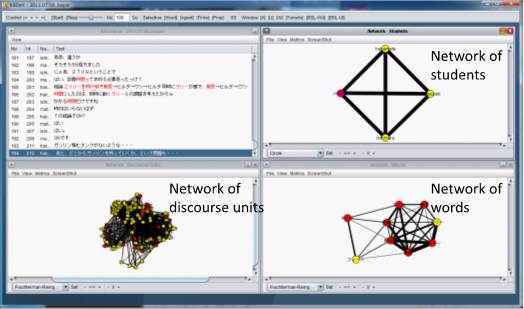 大島(純,律子)先生との共同プロジェクト.「知識構築(Knowledge Building)」と呼ばれるコンセプトで行われた協調学習の過程(ディスコース)を分析支援するソフトウェア.
